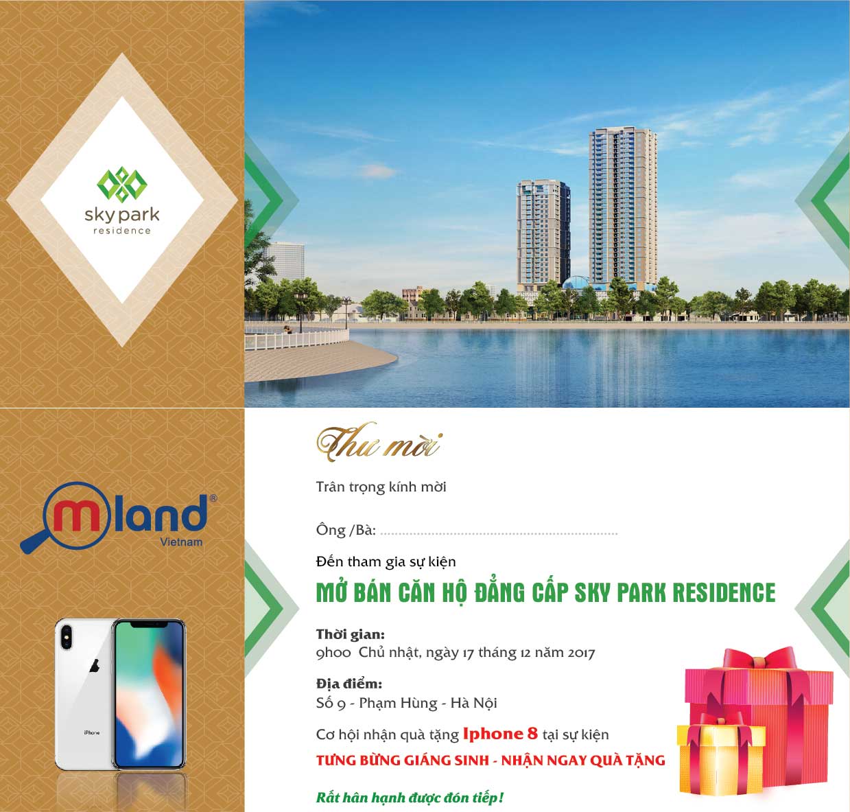 Thư mời tham dự mở bán căn hộ Chung cư cao cấp Sky Park Residence Sự kiện mở bán Chung cư cao cấp Sky Park Residence được Chủ đầu tư Dự án và đơn vị phân phối độc quyền Mland tổ chức. Sự kiện được diễn ra vào 09h00 ngày Chủ nhật 17/12/2017 tại Văn […]